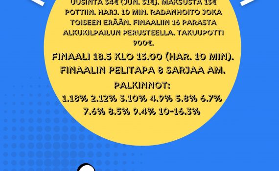 HENKILÖKOHTAISET MESTARUUSKISAT OVAT KOVASTI KÄYNNISSÄ, JA JOUKKUEMESTARUUSKISAAN ILMOITTAUTUMISAIKAA ON JATKETTU. NYT SIIS KASAAMAAN JOUKKUE JA ILMOITTAMAAN SE HALLILLE. MUUSSA TAPAUKSESSA KOKO KILPAILU SAATETAAN JOUTUA PERUMAAN! *Lisäjoukkueet joukkuemestaruuskisaan voivat maksaa osallistumisensa […]