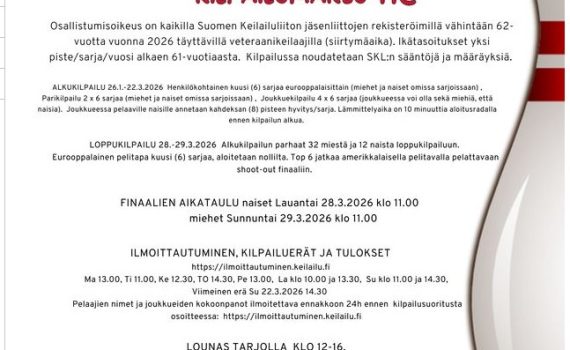 päivitys 26.11.2025 Jyväskylän veteraaneille on varattu 20 kpl paikkoja. Erä 43. Ajankohta: 2026-03-04 12:30 – Kyseiseen erään haluavat voivat lisätä nimensä hallin taululla olevaan listaan ja merkinnän tarvitseeko kyydin / […]