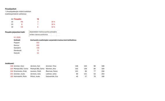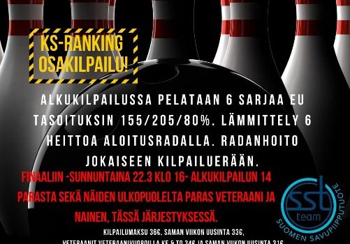 Tulospalvelu – KS Ranking Ranking-pisteitä kerätään kolmessa eri luokka-ryhmässä (MA, B, CD) Mukaan voi ilmoittua aina viimeiseen osakilpailuun saakka. Osakilpailut 2025-2026 (15) – KS Ranking Kilpailun säännöt – KS Ranking