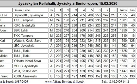päivitys 6.2.2026 Suomelle joukkuepronssia veteraanien EM-kilpailussa. Suomen joukkueessa keilasivat Esa Nieminen, Jukka Poutiainen, Leif Tuomisalo ja Erkki Koivuranta. Onnittelut koko joukkueelle! www.keilailu.fi – Suomelle joukkuepronssi ————————————————————————————————————- Jukka Poutiainen mukana veteraanien […]