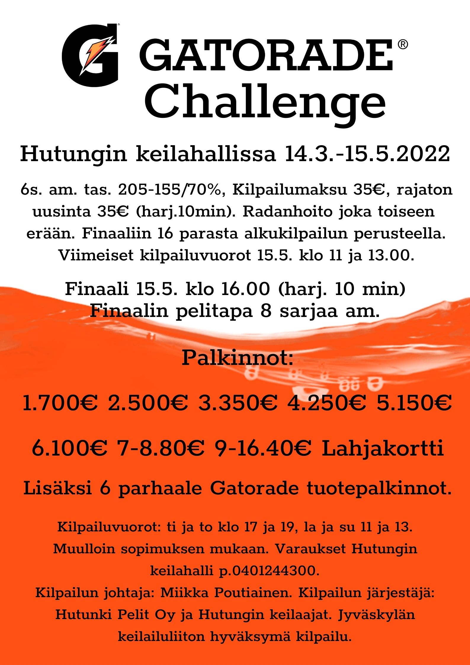 Hutungissa Gatorade challenge14.3.2022 in Erikoiskilpailut_old / Erikoiskilpailut_vanha / Liitto tiedottaa_old kirjoittajalta Anna-Riikka Andersson Pelataan 13.4 – 15.5. 2022 Kilpailuilmoitus: Gatorade-2022Lataa Radanhoitokuvat: GATORADE22Lataa Gatorade-2022Lataa TULOSLINKKI