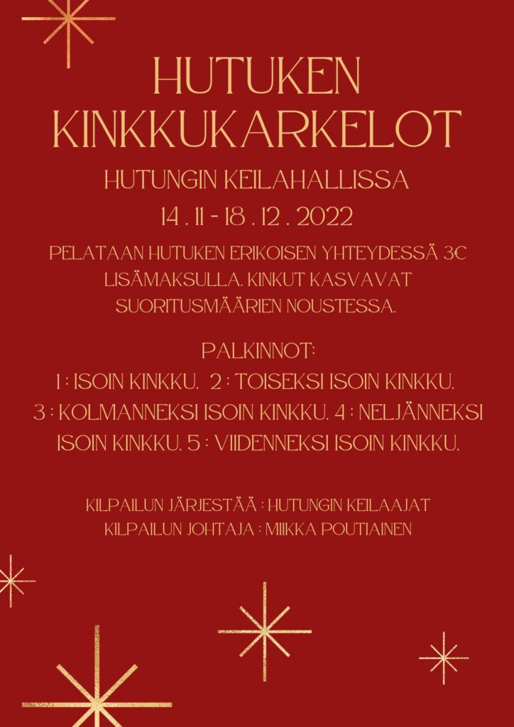Hutungissa HutuKen erikoinen 31.10-22.1.2023+ kinkkukarkelot joulukuussa3.11.2022 in Erikoiskilpailut_old / Erikoiskilpailut_vanha / Liitto tiedottaa_old kirjoittajalta Anna-Riikka Andersson ERIKOISKILPAILUN TULOKSET